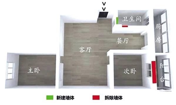 本户型是由吴女士的儿子一家三口居住,为了让他们居住更舒适温馨,吴女士决定将此户型通过设计师改造来满足儿子一家的需求。他们希望设计师可以合理分配空间,既保障各自的居住空间互不打扰,又能提升空间舒适性。