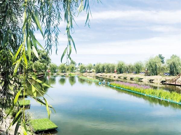 7月11日,记者在淮阳区郑集乡官路边村看到,这里碧波荡漾,鱼翔浅底,环境优美。近年来,郑集乡全力以赴擦亮人居环境底色成色亮色,着力打造水、岸、花、景、美丽田园相映成趣,文化、生态、观光深度融合的幸福美好新家园。该村硬化了路面,铺设了污水管网,提升了颜值气质。记者 沈湛 摄