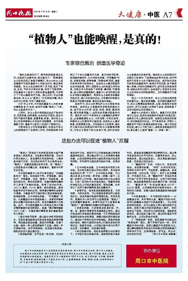 2023年上半年,市中医院康复中心共收治意识障碍患者20余例,经治疗促醒“植物人”3例,张女士就是其中之一。