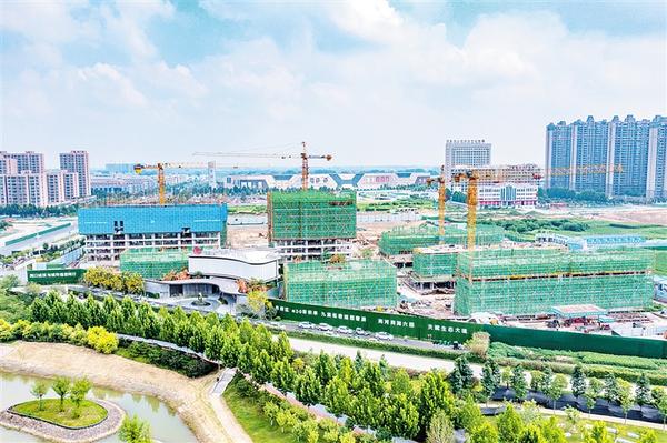 7月17日下午,夕阳下,建业云筑一期10多栋住宅楼做完外墙粉刷的外立面更显明亮的建筑肌理,米黄色与深灰色合理搭配,现代感十足,府系现代建筑风格尽收眼底。“现在工人们正在楼体内安装窗户、做内墙粉刷及装饰公共部位,工程进展顺利,一期洋房今年年底交房没问题。”王丹说。