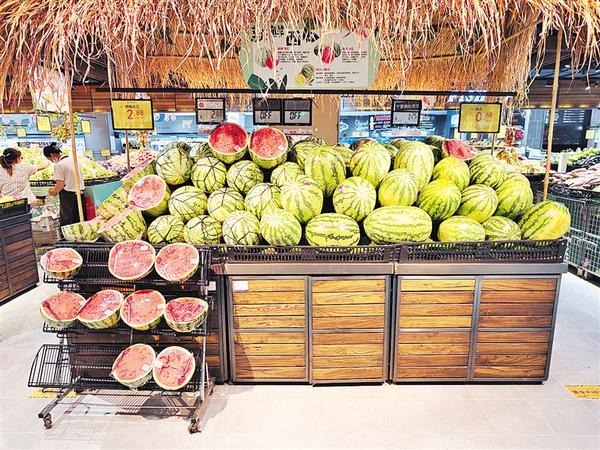为了能买到新鲜的分切水果,不少市民都和田先生一样,选择让店员现切一个。“我一个人住,买一整个西瓜吃不完,但买分切的瓜果有时就像‘开盲盒’,没有明示切开时间。大热天,不知放了多久,吃着多少有些担心。”市民张先生拎着半个西瓜说。