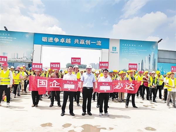 之后,大家举起右拳集体宣誓:“国企保障、使命必达……”天空朗朗,誓言铮铮,雄壮浑厚的声音穿过建业天悦一期13栋主体已基本竣工的建筑群,在周口文昌生态园上空回响。