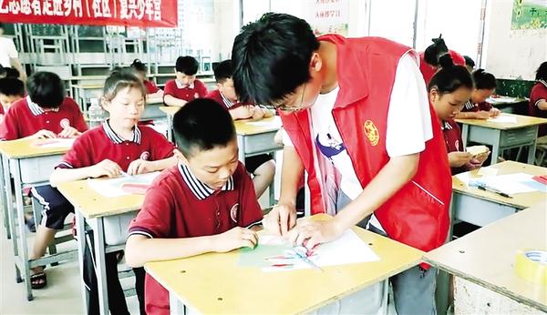 7月26日,在郸城县南丰镇中心小学少年宫,大学生志愿者教授学生剪纸技法。据了解,该县乡村学校少年宫立足实际,充分利用专兼职教师、学校场地及各种社会资源,本着学生自愿参加的原则,根据学生的兴趣爱好及特长,开设了涵盖音乐、体育、美术、益智四大类课程,由辅导老师或大学生志愿者现场指导,提升学生的综合素质。②7