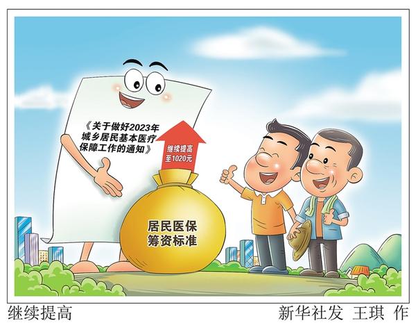 国家医保局、财政部、国家税务总局日前发布《关于做好2023年城乡居民基本医疗保障工作的通知》,明确2023年居民医保筹资标准为1020元,其中居民医保人均财政补助标准提高30元,达到每人每年640元,并同步提高个人缴费标准,达到每人每年380元。新华社发 王琪 作
