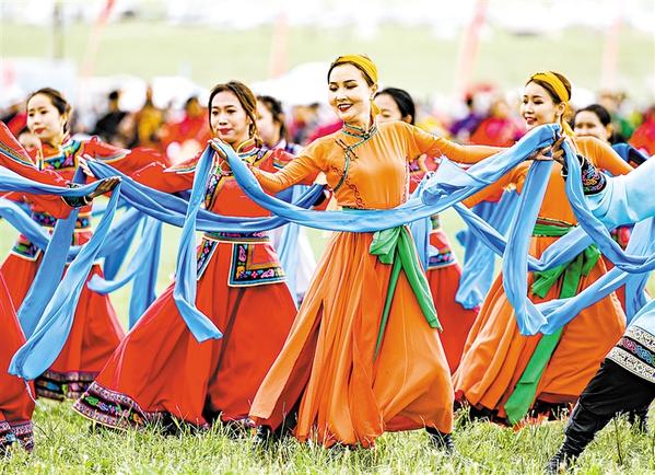 7月23日,演员在开幕式上表演。 当日,内蒙古自治区第33届旅游那达慕在锡林郭勒盟锡林浩特市开幕。本届旅游那达慕期间将举办赛马、搏克、射箭等民族传统体育比赛以及非遗保护成果展、汽车那达慕等活动,吸引各地游客前来观赏。