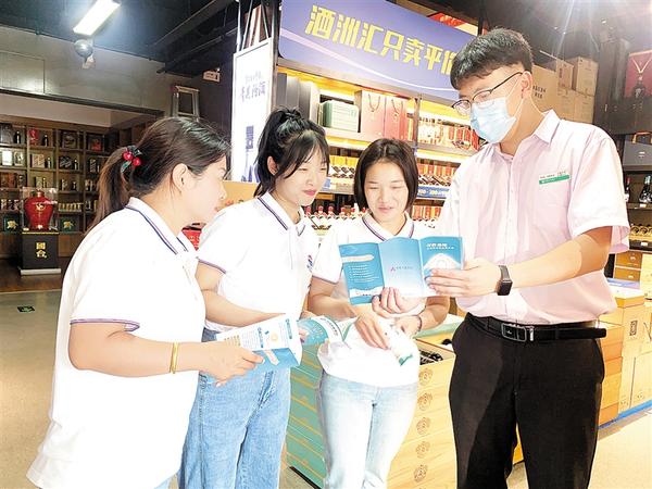 为进一步增加社会公众对存款保险制度的理解和认知,保护每一位群众的合法权益,近日,农行周口分行充分发挥营业网点的宣传主阵地作用,积极开展存款保险宣传活动。该行工作人员走进社区、街道、企业向群众发放宣传折页,解答存款保险偿付限额、保费支付等群众关心的热点问题,提高群众的风险防范意识,实现存款保险宣传与业务营销有机结合。图为8月1日,农行周口莲花支行工作人员向企业员工讲解存款保险知识。