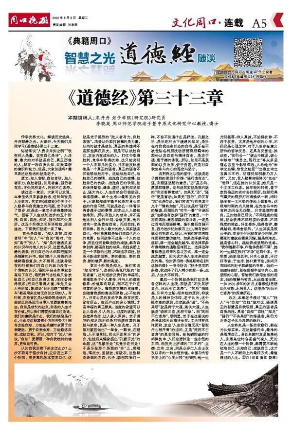 传承优秀文化,解读历史经典,开启智慧之光。大家好,今天我们共同学习《道德经》第三十三章。