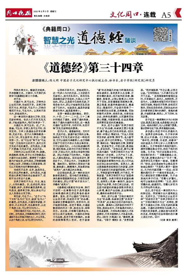 传承优秀文化,解读历史经典,开启智慧之光。大家好,今天我们共同学习《道德经》第三十四章。
