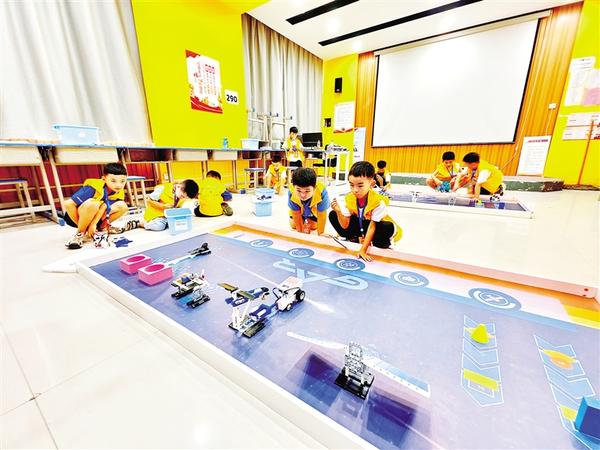 8月6日,一名小朋友在周口市第一届科普创新实践活动中操控机器人。本次活动以“热爱科学、崇尚科学”为主题,旨在为教育“双减”做好科学教育加法,助推青少年科学素质提升,营造讲科学、爱科学、学科学、用科学的浓厚氛围。该活动设机器人创新、青少年创意编程、无人机操作3个竞赛单元7个赛事项目,5岁至14岁的共计700余名中小学生参加了本次活动。①6记者 郑伟元 摄
