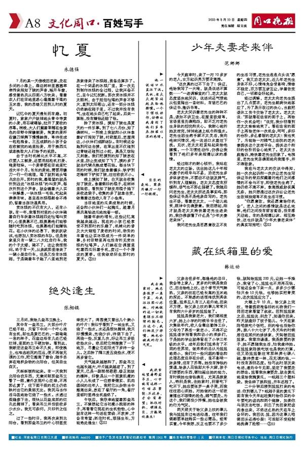 二十分钟后接到姐姐打来的电话:你到哪儿了?纸箱子里的黄瓜下面有我今天早起赶集时给你买的中午要吃的卤肉和两个猪蹄,如果你与朋友去吃饭,别忘了先回家把卤肉拿出来,不然这么热的天在车上会坏的。我回说:姐,因为这事儿咱俩回头还得吵架!可泪却不受控制地流满了脸颊……③22