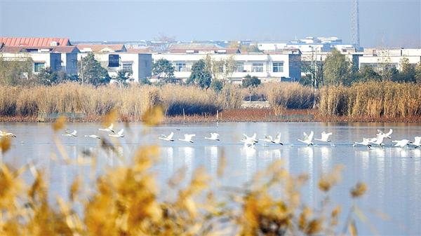 淮阳龙湖国家湿地公园碧波荡漾,蒲苇婆娑,荷花飘香。这里栖息着几十种鸟类,如野鸭、鹭鸟、河鸥、鸬鹚、长腿鹬、凤头鸊鷉、震旦鸦雀等。近年来,由于良好的生态保护,几百只白天鹅每年冬季也飞临湖区越冬,为龙湖锦上添花。贾红卫 摄