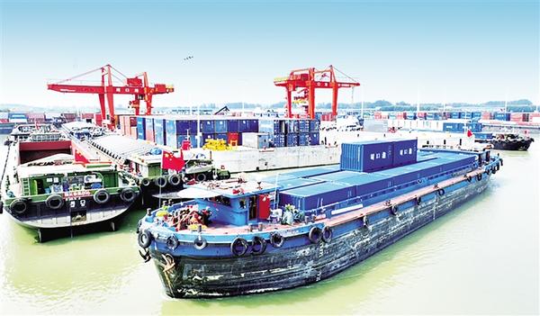 “从沙颍河到长江沿岸城市,以往要经过京杭大运河,绕一个大弯。引江济淮工程航道江淮沟通段投用后,把沙颍河与长江之间的距离拉近了300多公里,可节约3天航程,至少降低20%运输费用。”周口港城集装箱有限公司总经理唐予生介绍。