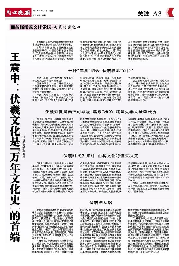 “然而,伏羲在由狩猎向农业过渡的1万多年前发明了八卦,是非常了不起的,在中华文化史上占有极其重要而独特的地位。”王震中说。
