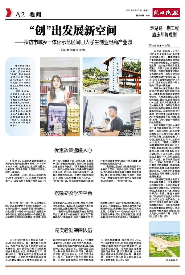 8月23日,记者走进许湾街道周口大学生电商产业园(青年驿站)(以下简称电商产业园),放眼望去,庭院规划整齐,朴素淡雅,既古色古香,又紧跟时代潮流,别有一番韵味。