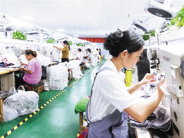 8月30日,在沈丘县付井镇岗王村一家鞋面加工厂生产车间里,经过培训持证上岗的70多名“巧媳妇”在生产线上加工童鞋鞋面。近年来,沈丘县妇联以“人人持证、技能河南”建设工作为契机,协调当地人社部门加大对农村留守妇女技能培训力度,带动更多留守妇女实现在家门口就业。通讯员 谢辛凌 摄