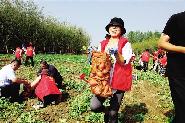 应着农时节令,商水县黄寨镇万亩蜜薯产业园里的春薯抢先成熟。