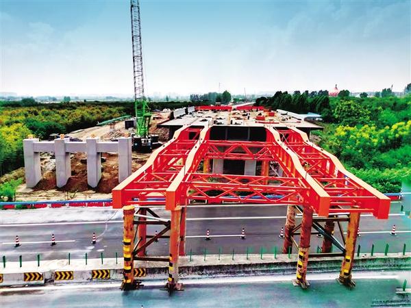 近日,中州大道北延项目迎来重要施工节点,关键控制性工程跨商南高速立交桥钢箱梁开始顶推施工。据了解,中州大道北延工程项目是我市2023年的重点工程项目,中州大道北延工程项目顺利通车后,对优化我市公路路网结构、提高通行能力起到一定作用。②2记者 沈铎 摄