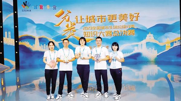 本报讯 9月8日,记者从市环境卫生服务中心获悉,8月30日至8月31日,周口市环境卫生服务中心职工王文凤随河南省代表队参加了在浙江宁波举行的2023全国城市生活垃圾分类知识大赛总决赛。经过激烈角逐,河南省代表队获团队(专业)赛三等奖。据了解,本次大赛由住房和城乡建设部指导,宁波市人民政府主办,以“分类,让城市更美好——垃圾分类全民赛,文明中国新时尚”为主题,来自全国29个省(自治区、直辖市)代表队参加比赛。