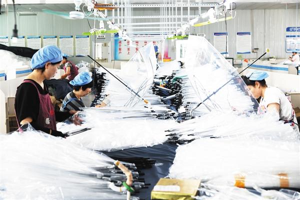9月11日,郸城县伞业产业园内,员工在制作伞骨。近年来,该县紧抓以劳动密集型产业向内陆转移的机遇,精准聚焦制伞企业,着力改善投资环境,全力打造“中国伞业之城”。该县以伞业产业园为龙头,实现“县有总部、乡有分厂、村有车间、家有班组”的生产经营模式,让制伞企业遍地开花。目前在该县乡村设有200多个加工点,增加近万个就业岗位。记者 沈湛 摄