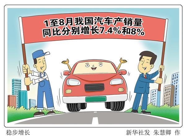 记者9月11日从中国汽车工业协会获悉,1月至8月,我国汽车产销量分别达1822.5万辆和1821万辆,同比分别增长7.4%和8%,产销量保持同比稳步增长。 新华社发 朱慧卿 作