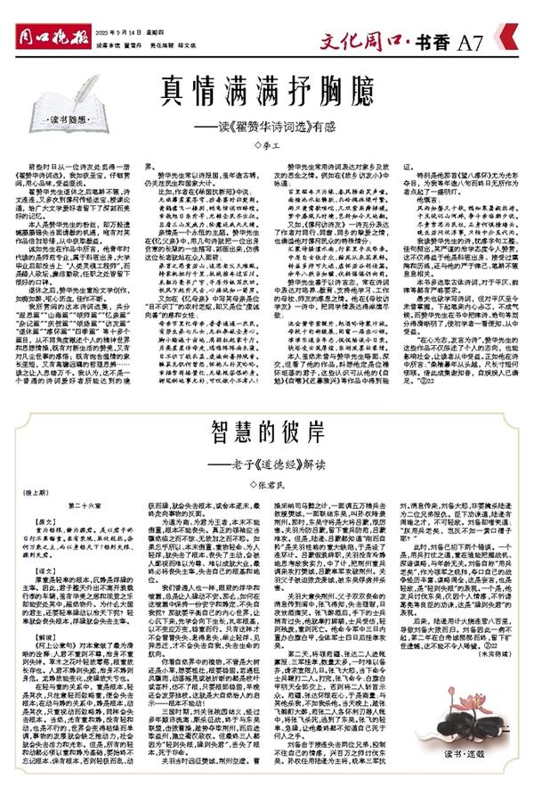 亲情是一个永恒的主题。赞华先生在《忆父亲》中,用几句诗就把一位出身贫寒的长辈的一生描写、刻画出来,仿佛这位长者就站在众人面前: