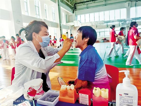 9月16日上午,周口德正医院医生在周口市体育中心为居民检查口腔。当日,周口德正医院医护人员来到周口市体育中心、顺和家园小区,开展“全国爱牙日”义诊宣教活动。