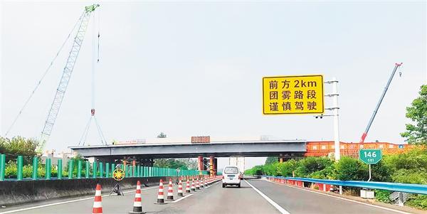 9月17日下午,施工人员在中州大道跨商南高速的单幅立交桥上施工。经过多日顶推施工,该桥60米长的单幅立交桥梁顺利合龙。根据施工计划,该桥的单幅立交桥将于国庆期间通车。
