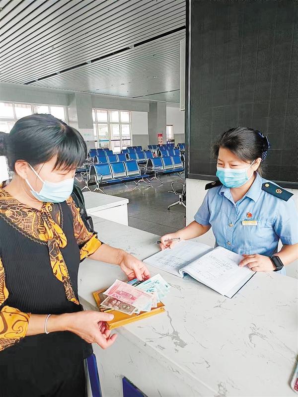 唐女士从周口火车站客服中心取回遗失的钱包。