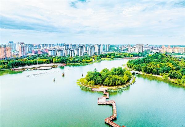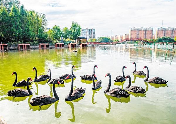 初秋的鹿邑,天高云淡。极目远眺,迎仙山静静地伫立在上清湖畔,俊秀挺拔。湖水清澈无比,成群的黑天鹅悠闲嬉戏。蓝天、白云、青山、碧水相映成趣,充满了诗情画意。②10