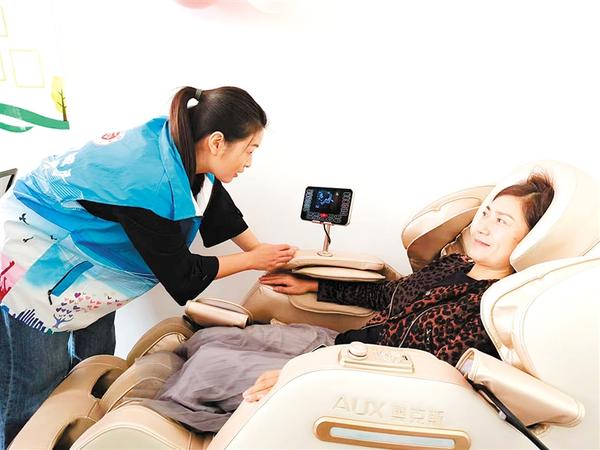 □记者 宋风 文/图 本报讯 9月27日,位于市城乡一体化示范区文昌街道中原社区党群服务中心的“健康小屋”正式启用,让附近居民就近就能享受到免费的常规体检和医疗健康服务。 “最近两年,因身患腰椎间盘突出,我经常到医院做理疗。今天发现小区开了‘健康小屋’,仪器和医院的一样,还有志愿者负责操控设备,真是为我们办了一件大实事。”居民丁建东说。 记者现场看到,十几平方米的“健康小屋”内环境优雅、整洁明亮,不仅有电子血压计、血氧仪、体测仪、血糖仪等医疗设备,还配置了艾灸仪、按摩椅、红外线理疗灯等保健设备,现场有志愿者负责管理,居民随时可以到“健康小屋”接受日常监测、理疗。 据了解,该“健康小屋”是由中原社区与东吴人寿保险股份有限公司共同打造,集健康监测和服务于一体,满足了社区居民不出小区就可以实现日常的健康管理需求。②16 志愿者为居民调试按摩椅。