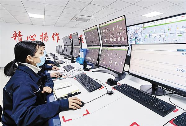 近日,在河南金丹乳酸科技股份有限公司的监控室内,工人在认真工作。作为世界上农产品精深加工产业链条最长,横跨国家生物、新材料、节能环保三大战略性新兴产业的高新技术企业,河南金丹乳酸科技股份有限公司以玉米为原料生产乳酸、聚乳酸产品,致力于实现粮食精深加工的绿色循环和高质量发展。记者 王映 摄