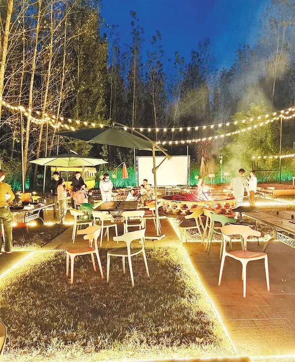 在元野露营餐厅,游客在露营氛围中享受美食;在沙颍半岛景区,游客伴着扑鼻的茶香,在露营休闲之余体验围炉乐趣;在周口野生动物世界,游客在露营的同时,还可与野生动物近距离接触,体验别样乐趣……