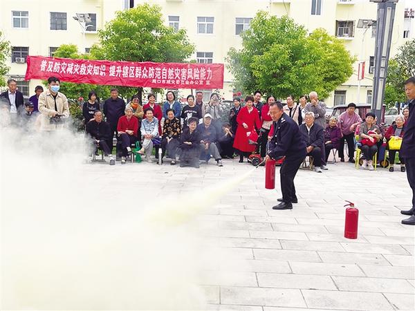 本报讯 “遇到火灾、溺水、老人摔倒等紧急情况,大家千万要保持冷静,科学施救,我现在向大家演示一下具体如何施救……”10月12日,在中心城区七一路街道文明社区五交化家属院内,周口应急管理宣讲小纵队宣讲人员为小区居民进行灭火、救援落水人员等应急演练,受到居民的一致好评。