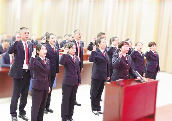 “我宣誓:忠于中华人民共和国宪法,维护宪法权威,履行法定职责……”近日,郸城县人民检察院举行宪法宣誓仪式,该院新晋级、新入额、新转正、新录用人员进行了庄严的宪法宣誓。图为宪法宣誓仪式现场。