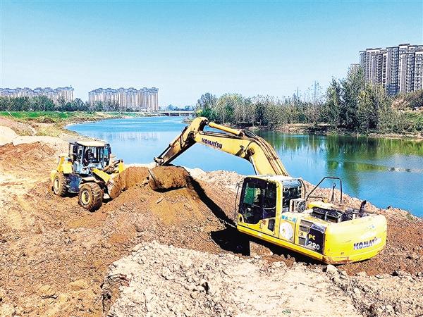 10月17日,在贾鲁河综合治理工程川汇区段工地上两台重型机械正在作业。该河道综合治理项目周口段长83.9公里,涉及扶沟县段43.4公里、西华县段34.37公里、川汇区段6.13公里。贾鲁河经过综合治理后,将形成“提、蓄、滞、节、排”的流域防洪工程体系,实现流域内洪涝兼治,打造成全线堤防达标、堤线闭合、统筹水生态水环境的治理示范性防洪河道。记者 沈湛 摄