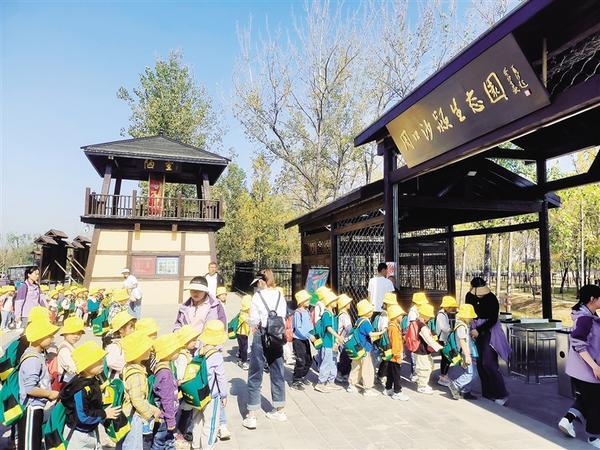 10月17日上午,周口沙颍生态园迎来当日第二批小客人——淮阳区金太阳幼儿园的孩子们。周口沙颍生态园是川汇区孙嘴村文旅项目之一,是集旅游观光、美食露营、研学团建等为一体的综合性游园。记者 沈湛 摄