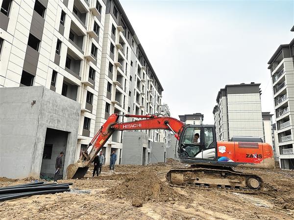 几台小型挖掘机在已回填好土方的楼宇间,按照划定的标线开挖不同深浅的土沟,供热力、自来水、雨污水、照明、弱电等不同管线使用。项目工程师王朋涛一边察看不同作业面的工程进度,一边指导工人施工,来回穿梭。