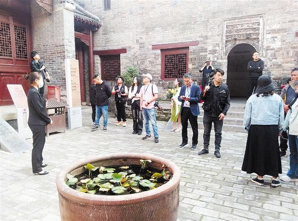 “叶氏庄园是我国典型的硬山式四合院组群建筑,建筑规模、占地面积、砖木雕刻都堪称一绝,是清代民居不可多得的实物资料,也是研究豫东地方民居不可多得的珍贵实物资料,具有非常重要的历史、艺术和科学价值。叶氏庄园被列为省级重点文物保护单位,被国务院拟定并公布为第七批全国重点文物保护单位……”听着讲解员的介绍,采风团成员被叶氏庄园厚重的文化所吸引。如今,修整一新的叶氏庄园,新增了研学基地,建设了叶氏庄园展示厅、民俗文化展示厅、传统服饰展示厅、农耕场景展示厅等,一厅一特色,引来大家啧啧赞叹。