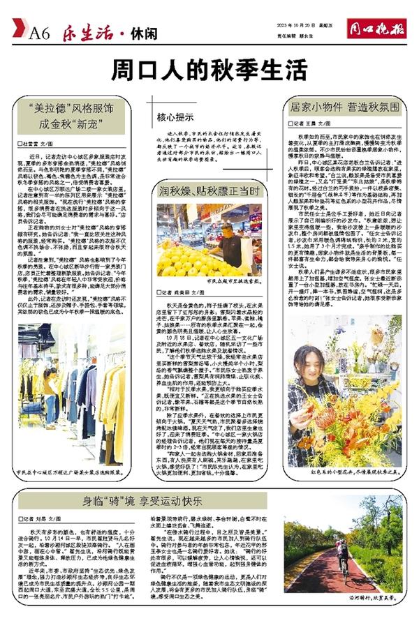 进入秋季,市民的衣食住行悄然发生着变化,他们喜爱购买的物品,他们的消费行为等,都反映了一个城市的经济水平。近日,本报记者通过对部分市民的采访,描绘出一幅周口人生动有趣的秋季消费图景。