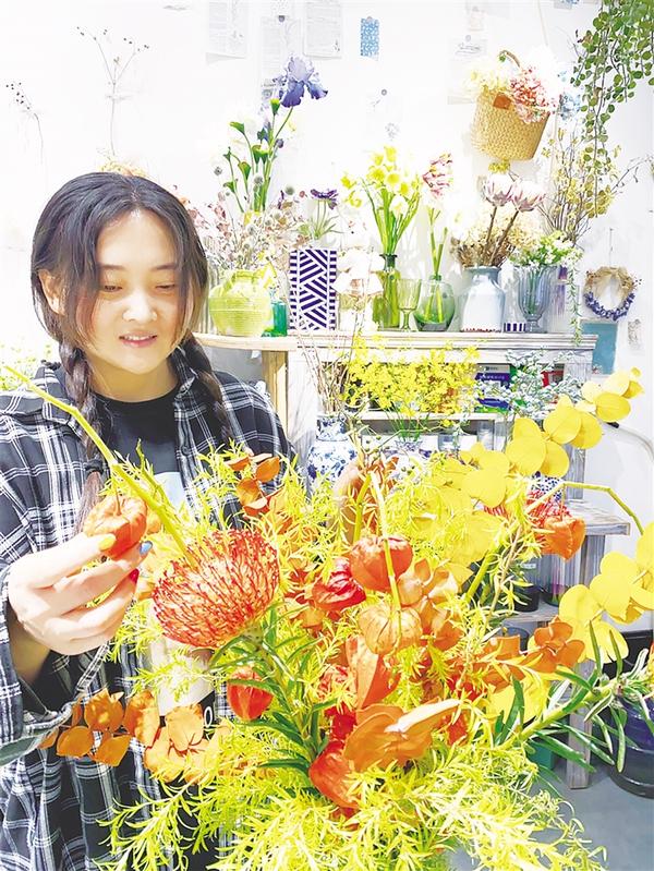 昨日,中心城区某花店老板白兰告诉记者:“进入秋季后,顾客会选购有果实的绿植摆放在家里,象征丰收和希望。”白兰说,酸浆果是备受市民喜爱的绿植之一,又名“灯笼果”“东北姑娘”,是秋季特有的花材。经过白兰的巧手装扮,一件以枝条密集、细长的“千层金”(植物名字)等作为基础结构,再加入酸浆果和针垫花等红色系的小型花卉作品,尽情展现了秋季之美。