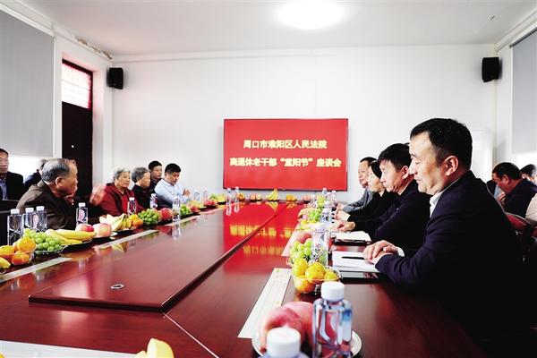 为进一步关心关爱离退休干部,增强离退休干部的归属感、幸福感,10月20日,在重阳节来临之际,淮阳区人民法院组织离退休干部召开座谈会,该院党组书记、院长陶陶代表院党组和全体干警,向与会老干部致以诚挚的问候和美好的祝愿。通讯员 滕孝忠 摄