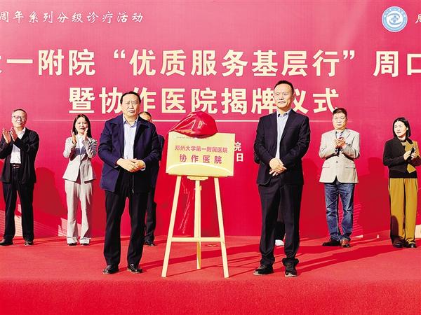 本报讯 为构建整合型分级诊疗体系,推动优质医疗资源扩容,10月21日,郑州大学第一附属医院(以下简称郑大一附院) “优质服务基层行”活动周口站暨协作医院揭牌仪式在周口市人民医院举行。