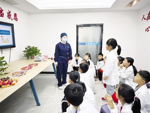 10月22日下午,周口报业小记者走进赛博口腔,体验当一次“小牙医”。经过老师的趣味讲解和演示,“小牙医”们纷纷拿起牙镜相互检查牙齿。