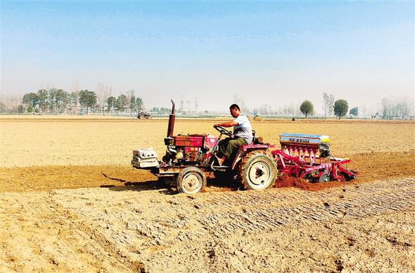 10月24日,扶沟县大新镇三太冢村一名农民驾驶农机播种小麦。当日是霜降节气,该县农民抢抓农时,做好农作物的采收、播种等工作,田间地头一派繁忙景象。通讯员 卢付昌 摄