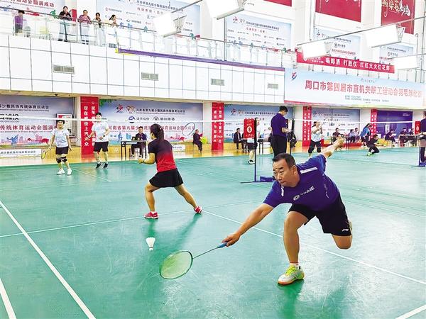 本报讯 10月26日上午,周口市第四届市直机关职工运动会羽毛球比赛在市体育中心羽毛球馆挥拍开赛。