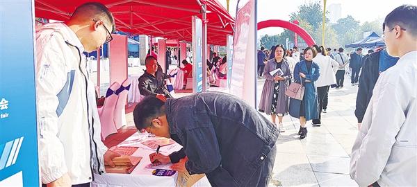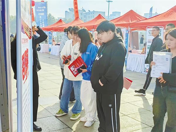 “请问公司地点在哪里,有没有年龄要求?”“每个月休息几天?有没有‘五险一金’……”招聘会现场人头攒动,求职者拿着简历在各企业招聘展位间穿梭,查看企业用工信息,详细了解岗位需求,挑选适合自己的岗位,同时就工作内容、发展前景、薪资待遇等与企业招聘人员进行交流。