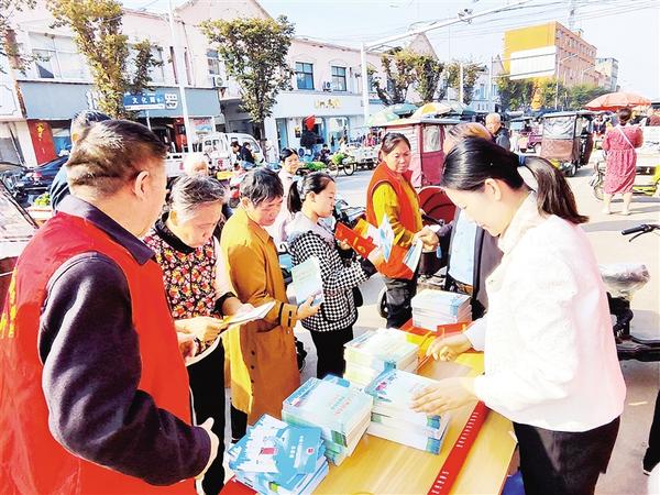 近日,商水县新城街道司法所工作人员在汝阳路罗马广场开展“习近平法治思想”进社区宣传活动。活动现场,工作人员通过向来往群众发放普法宣传册等方式,引导群众知法守法、履行法治义务。