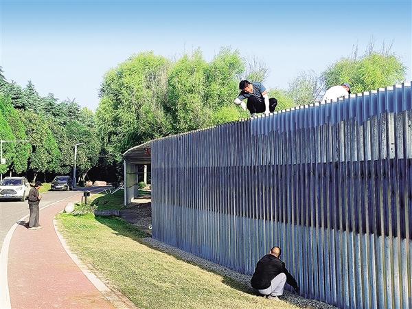 10月31日,周口植物园里几名工人正为铁艺长廊打磨刷漆。近年来,周口植物园强化内部管理,不断完善基础设施,优美的环境受到了越来越多游客的青睐。记者 沈湛 摄