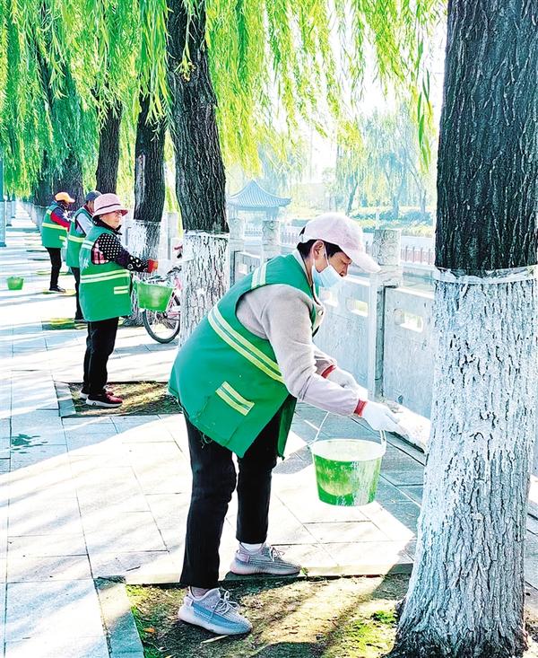 10月29日,鹿邑县园林绿化工人对道路两侧的树木进行涂白。据了解,每年10月下旬是树木涂白的最佳时期,及时对树木进行涂白,不仅可以预防日灼、冻害,还可以有效减少越冬害虫。连日来,鹿邑县市政园林管理中心利用晴好天气,组织养护人员对城区公共绿地、主次干道、公园广场等地树木开展涂白、修剪整形等养护工作。