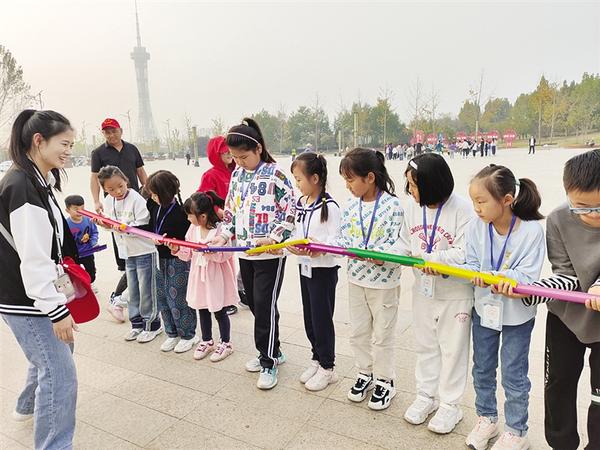 本报讯 10月28日,周口报业小记者中心在周口沙颍河湿地公园举行小记者亲子趣味挑战活动。活动中,小记者家庭参与了多种挑战项目,一圈到底、珠行万里、腾空合照、争分夺秒……一系列趣味十足的闯关游戏赢得了小记者的青睐,尽情地享受游戏带来的乐趣。